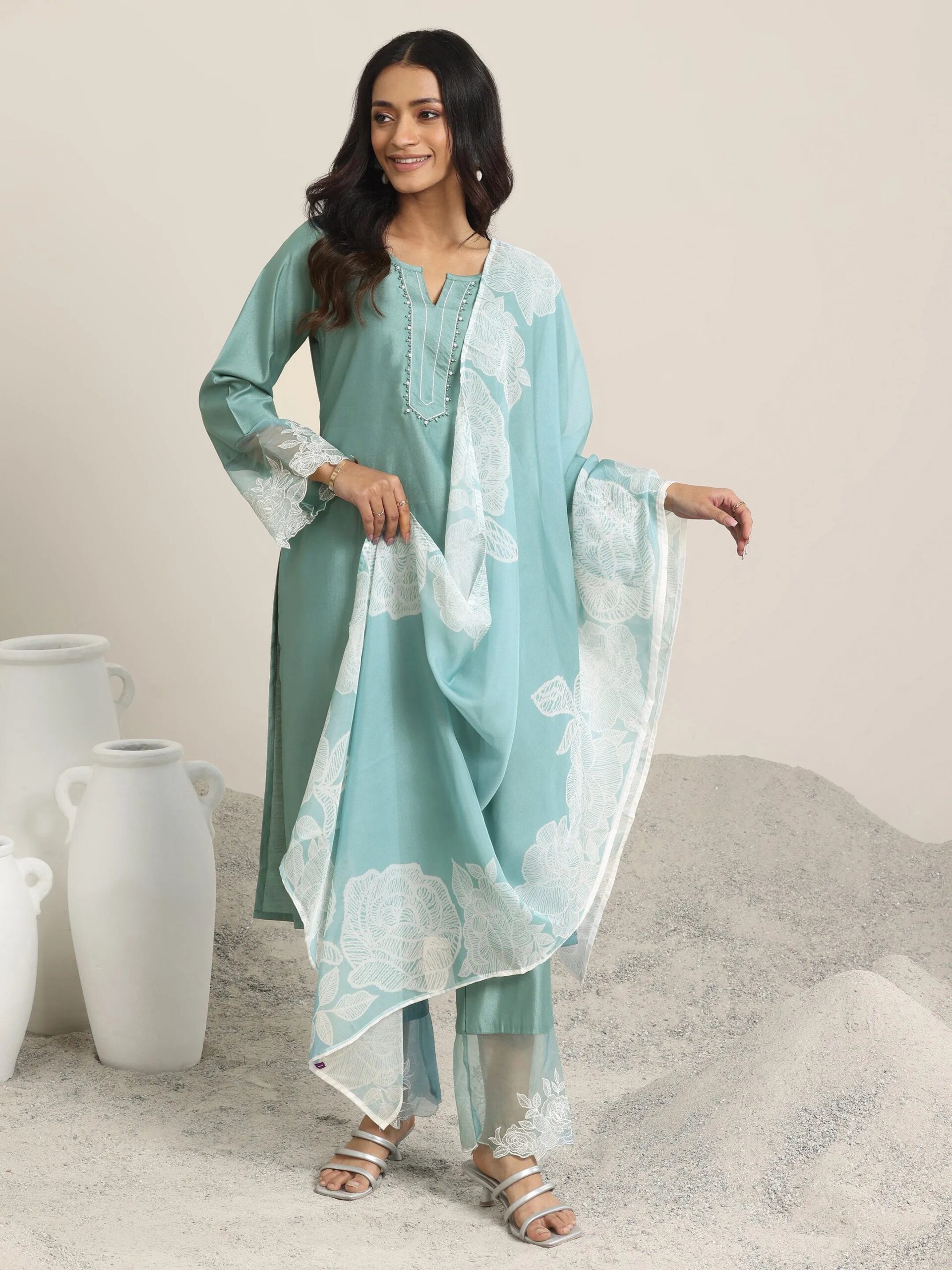 Green Yoke Design Silk Blend Straight Suite
