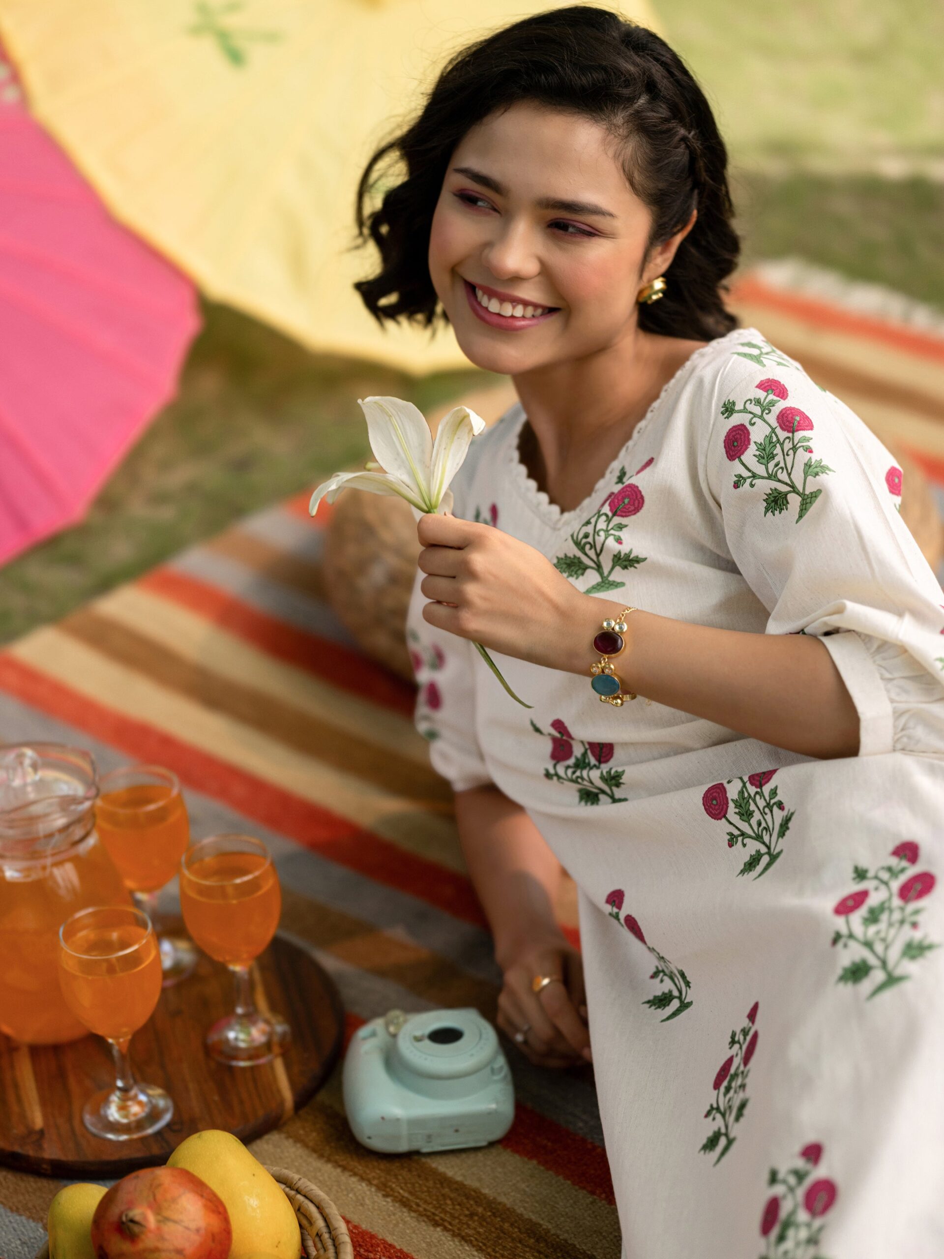 Off white Printed Cotton Straight Kurta Set