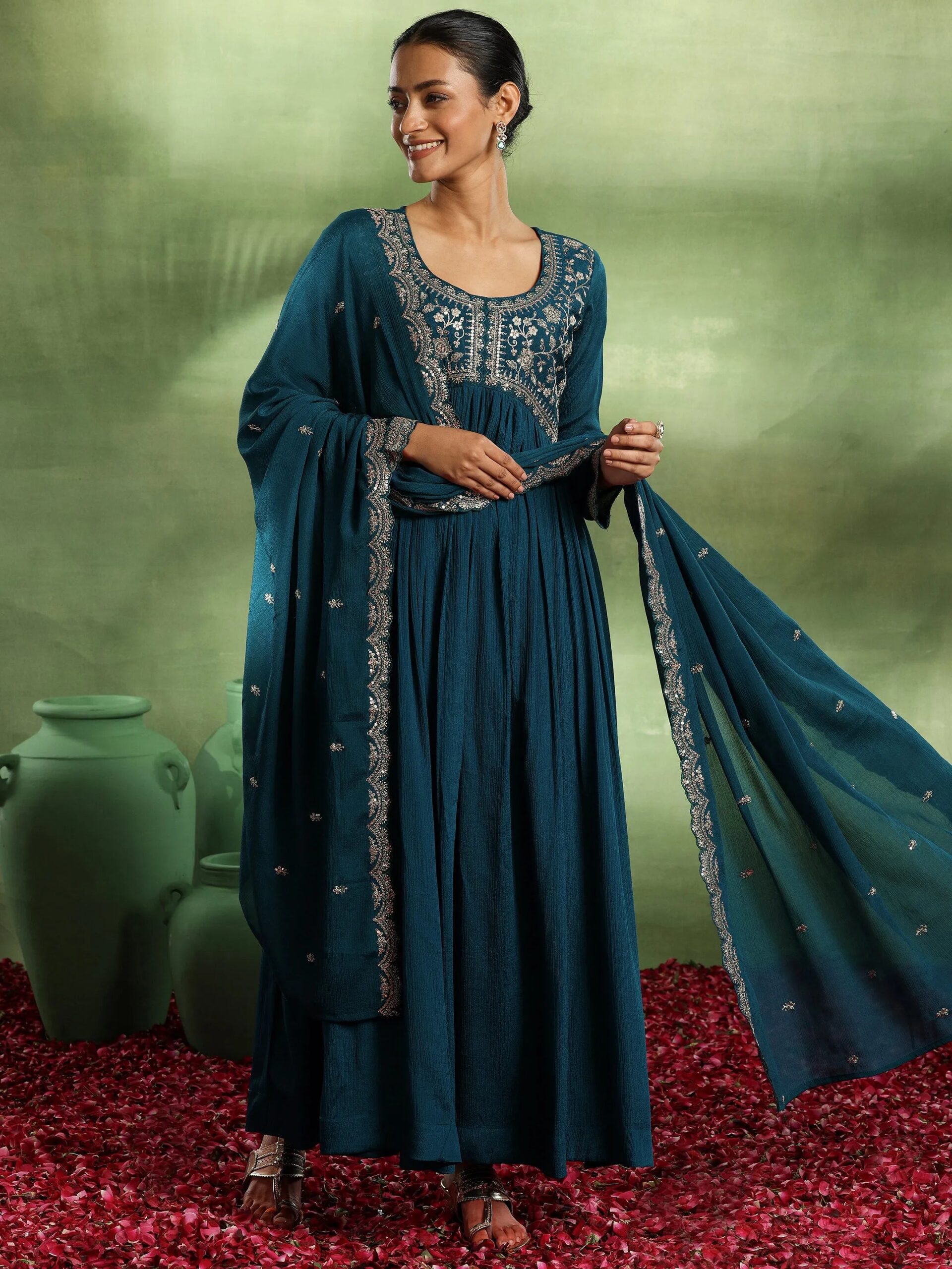 Blue Yoke Design Rayon Anarkali Suit With Bottom